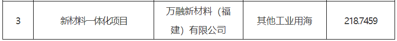 2024年1月,福清万融新材料一体化项目用海获国务院批复,用海总面积218.7459公顷。从公布的信息中得知,该项目所属企业为“万融新材料(福建)有限公司”。